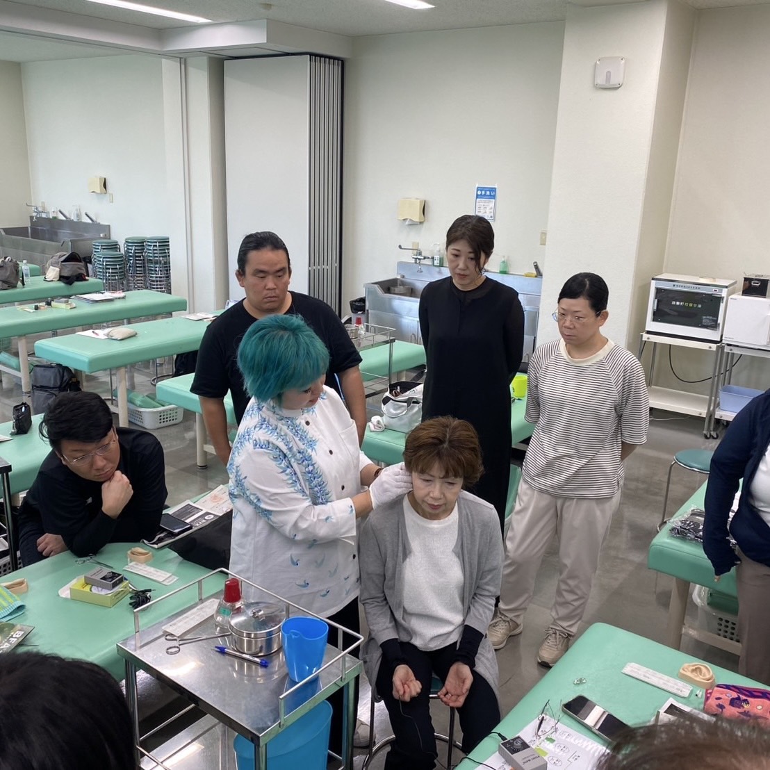 手技自体は比較的シンプルですが鍼の持ち方や押し手の位置、力の加え方、その後の余韻の残し方など実際にやってみるととても難しく、耳の模型を使ってたくさん練習していきたいと思います。